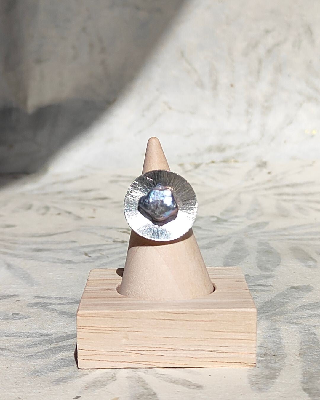 Anello in Ag925 con perla d'acqua dolce grigia centrale