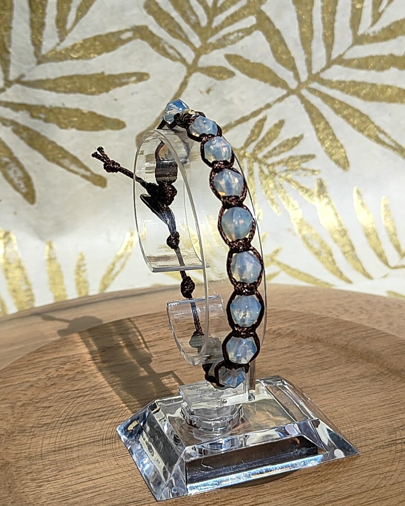 Bracciale tibetano in Quarzo Opalino taglio "Diamond Cut" e Calabash in argentone.